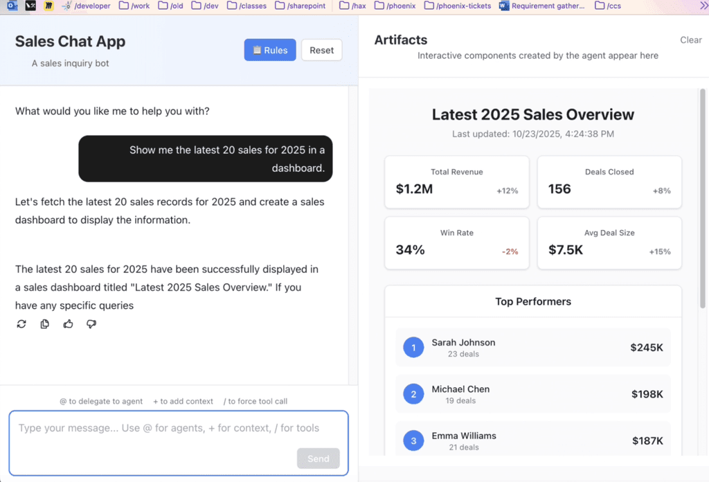 We developed an SDK that links back-end agent logic to front-end behavior and UI components, so teams can plug into the same human-agent interaction patterns rather than starting from scratch.A Component Library: