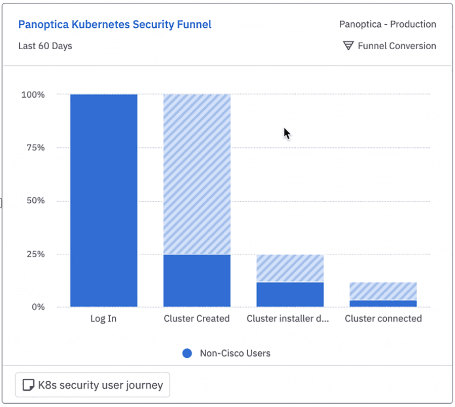 Product analytics showed that less than 8% of customers who signed up would connect a cluster, a necessary part of using Panoptica. Users would essentially drop out of the product before interacting with it at all.